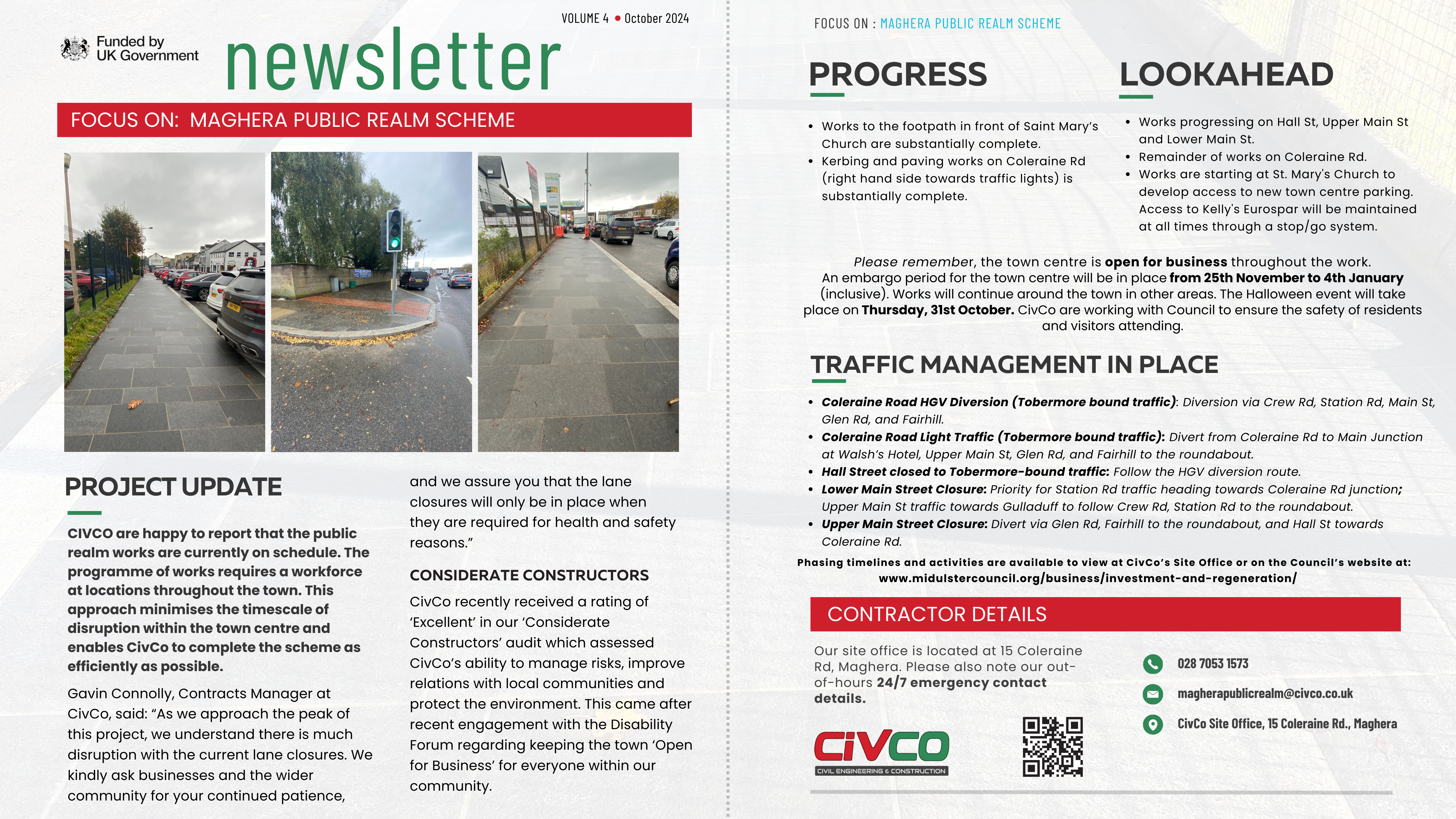 Phasing timelines and activities will be available for members of the public, local businesses and interested parties to view at CivCo's site office, at 15 Coleraine Raod, Maghera.
